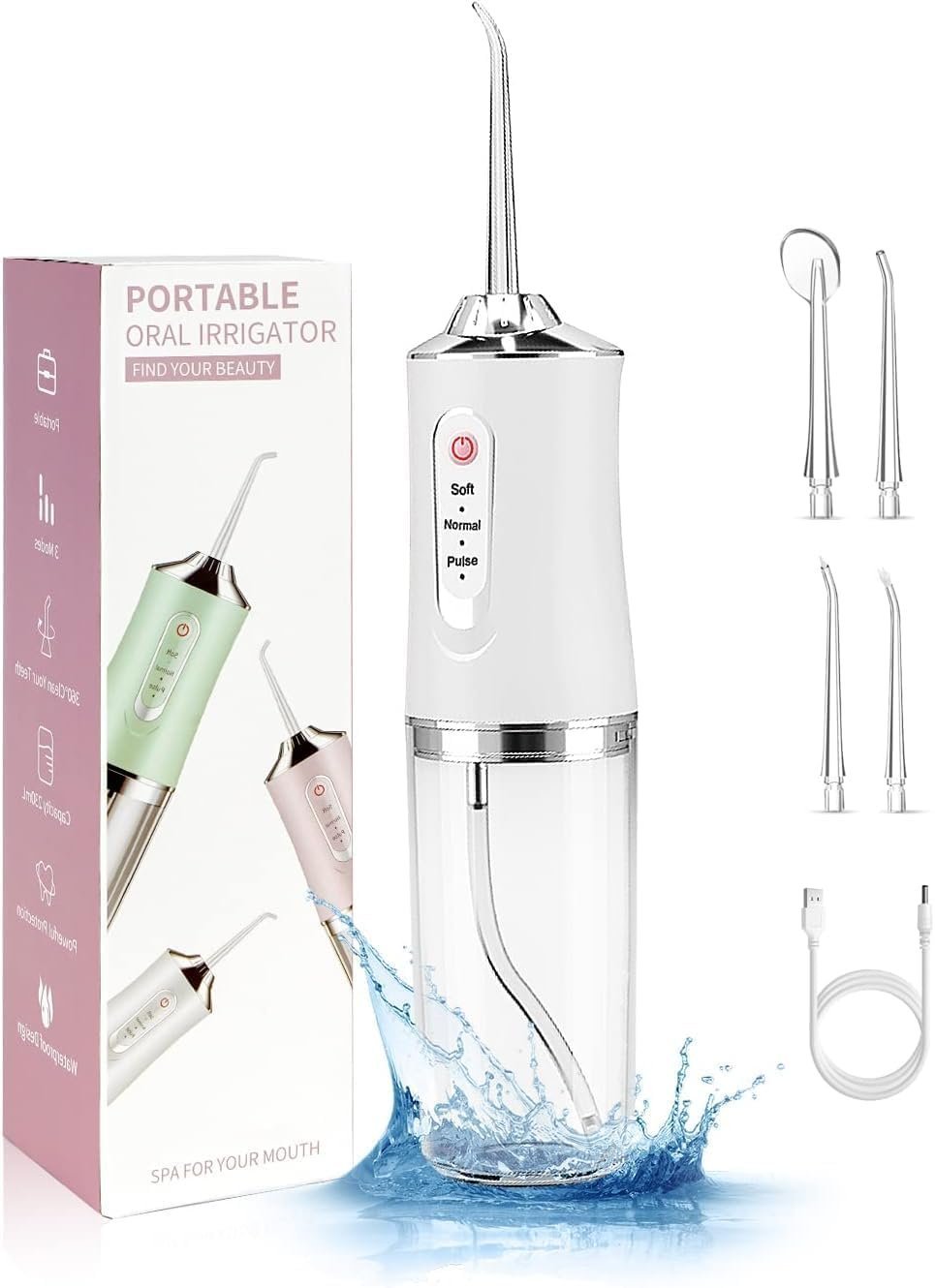 • 2. أوضاع تنظيف الأسنان المخصصة، اختر من بين ثلاثة أوضاع للخيط: الوضع العادي: نبضات ماء قوية لإزاحة الجزيئات بين الأسنان. وضع ناعم: ضغط لطيف للأسنان واللثة الحساسة. وضع النبض: تنظيف عميق مع تحفيز اللثة.