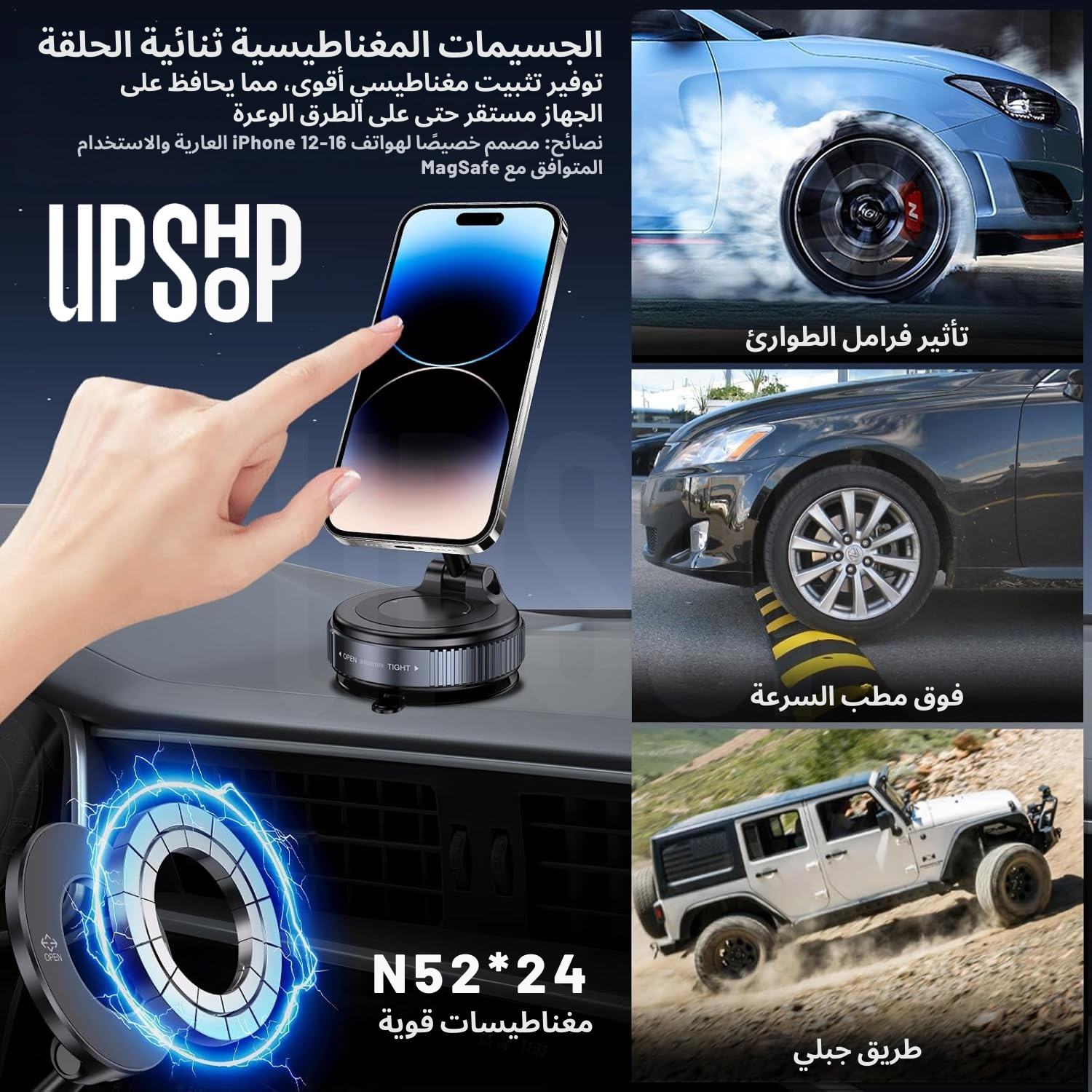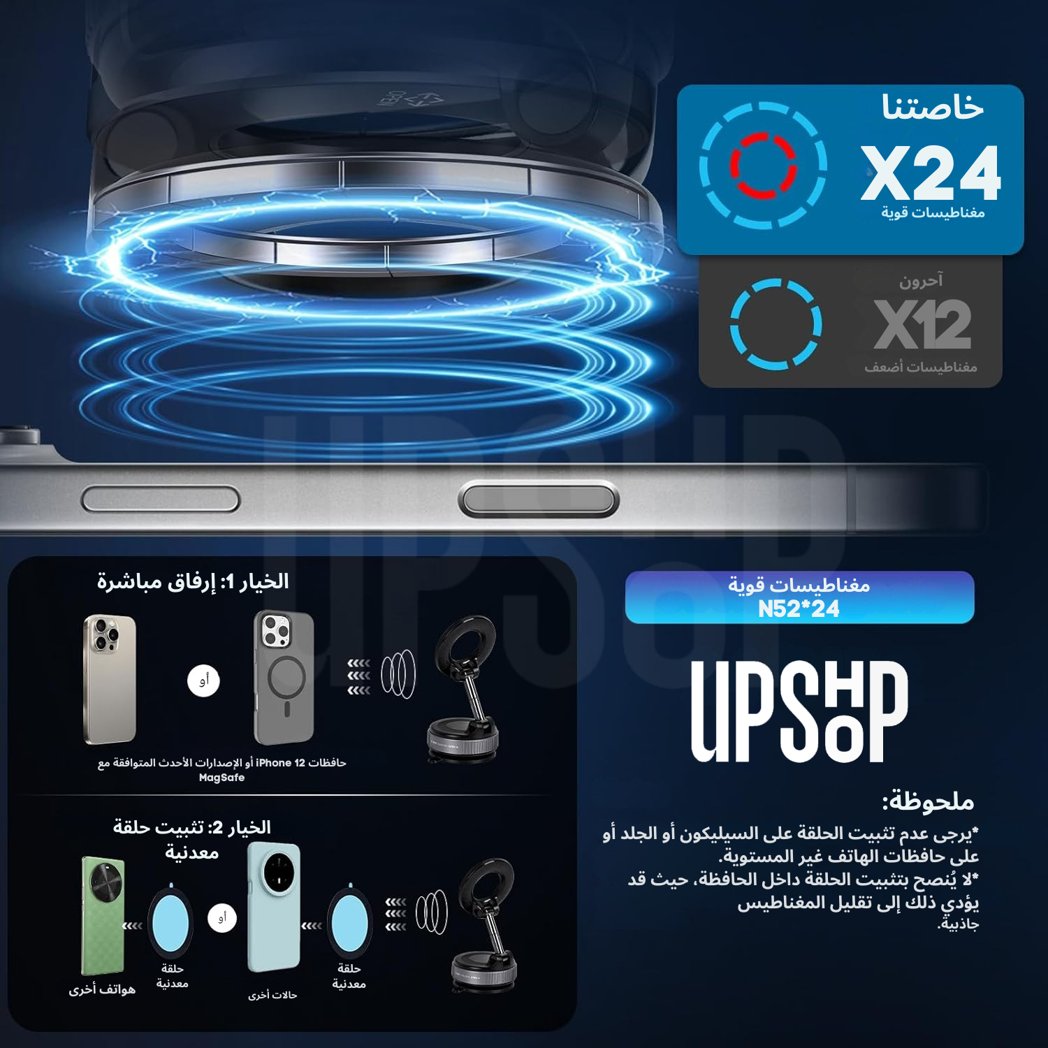 قبضة مغناطيسية لا مثيل لها لقيادة آمنة: مُحسّنة بـ 24 مغناطيس N52 بتصميم حلقة مزدوجة لثبات فائق القوة والثبات، حتى على الطرق الوعرة. لا تتداخل مع الإشارة. مصممة لهواتف وحافظات MagSafe iPhone؛ تتضمن حلقات مغناطيسية لتوافق أوسع مع الهواتف.