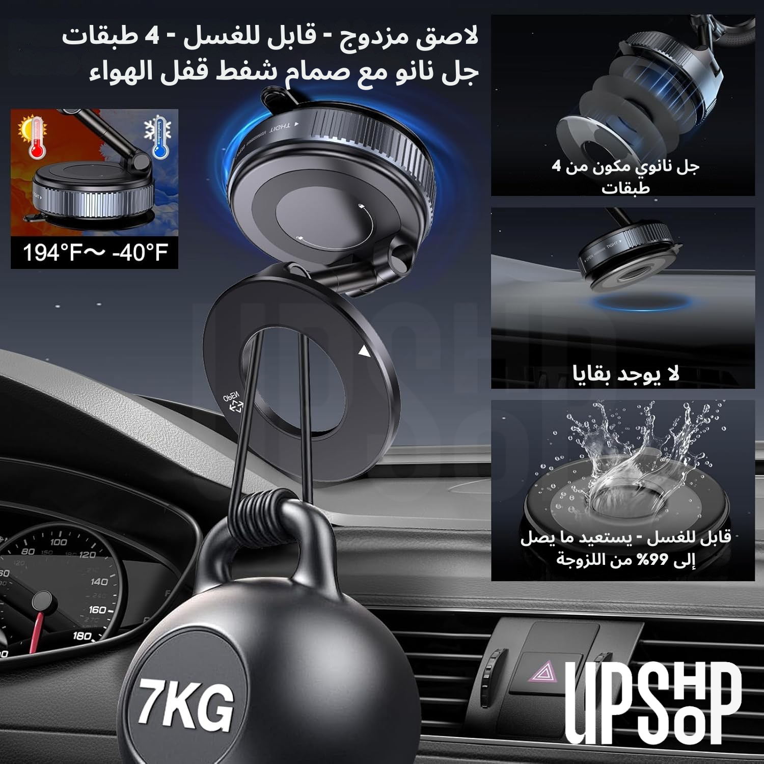 قاعدة جل قابلة للغسل – تُعيد الثبات بعد الشطف: تحافظ قاعدة الجل النانوية القابلة لإعادة الاستخدام على قوة التصاق قوية عند التنظيف. في حال ضعف قوة الشفط بسبب الغبار أو الأوساخ، اشطف الجل بالماء واتركه يجف في الهواء – وهذا يُعيد ما يصل إلى 99% من لزوجته الأصلية، وهو مصمم لتحمل درجات حرارة تتراوح بين -40 درجة فهرنهايت و194 درجة فهرنهايت.