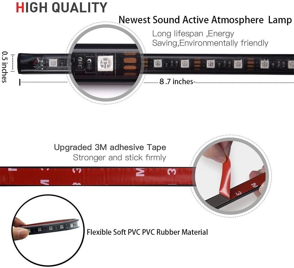 أضواء ليد عالمية للسيارة، سهلة التحكم عن بعد، 8 ألوان اختيارية، تجعل سيارتك أكثر جاذبية وتعزز متعة القيادة. يمكن أن تتغير الألوان مع إيقاع الموسيقى أو أي صوت آخر تحت وضع الموسيقى، أضواء ليد داخلية أنيقة للغاية أسفل لوحة القيادة. يرجى ملاحظة: يوصى باستخدام ولاعة لتسخين السطح الملصق قبل اللصق.